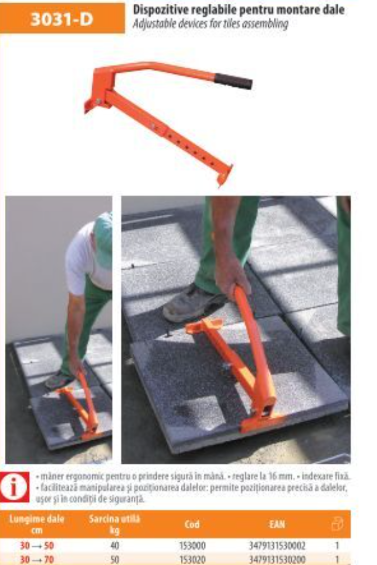 • Ușurință mare în manipularea și poziționarea dalelor de beton, cu o singură mână.